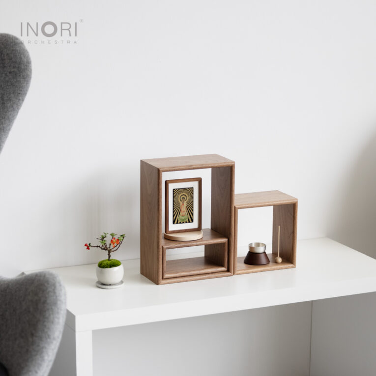 ご本尊さまをご安置する場所として、品位ある美しさとシンプルさにこだわりました。アクリル板で挟むことで、美しく安全に持ち運べます。付属の台座に簡単に差し込むと、ご本尊台としてもお使いいただける2WAY使用です。インテリアにもさりげなく馴染みます。